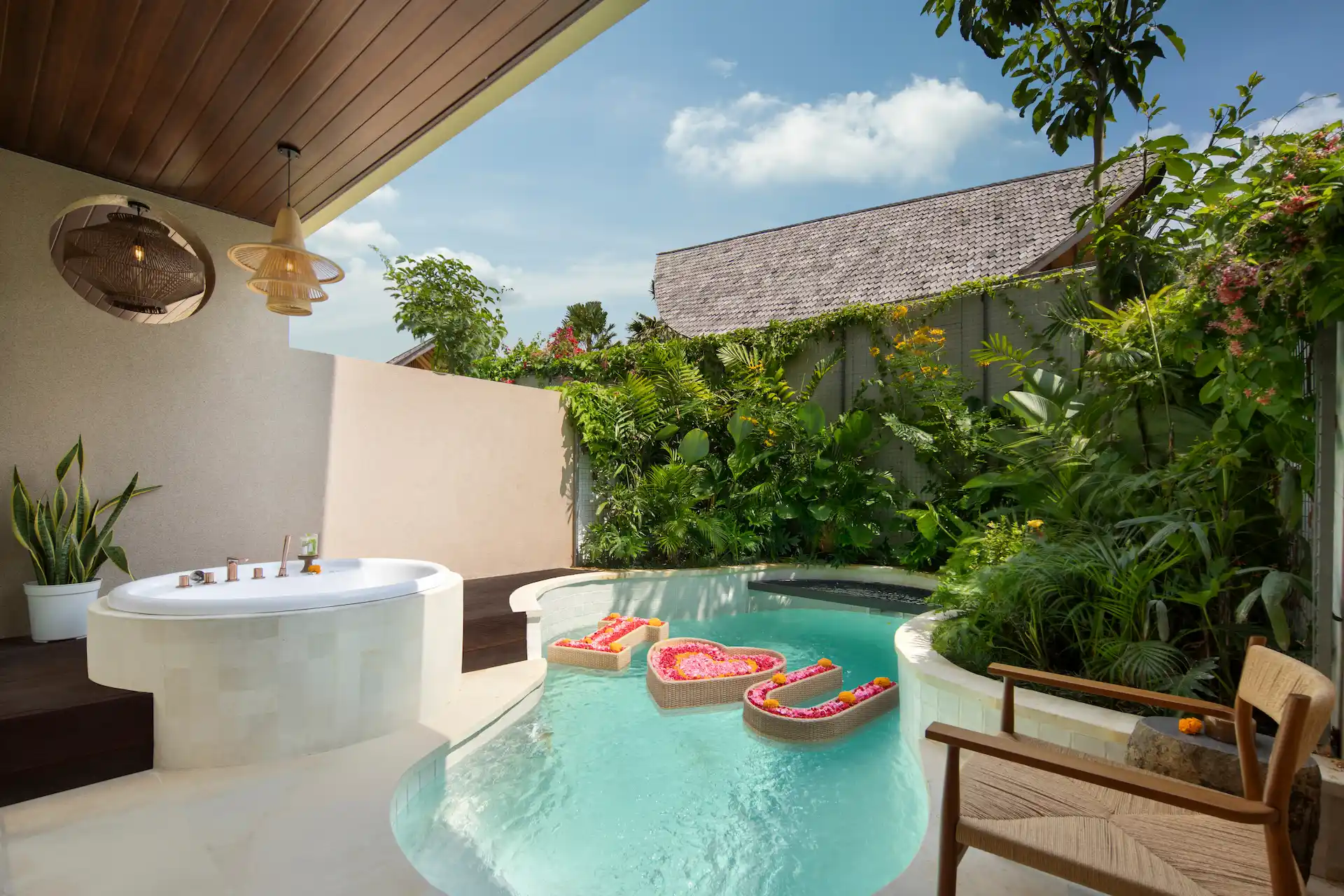 Privasi maksimal dengan kolam renang dan jacuzzi pribadi di setiap villa